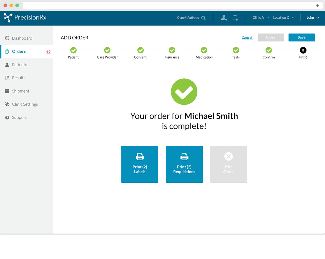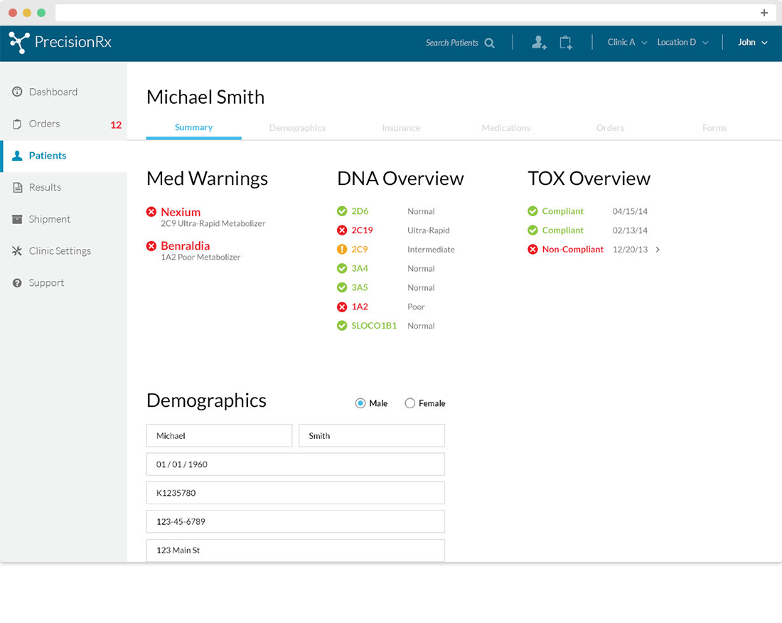 Precision RX is changing the way physicians manage medications to better prescribe patients. This application allows clinics to order DNA tests and send results to physicians so they can prescribe more accurately based on their patient's DNA.