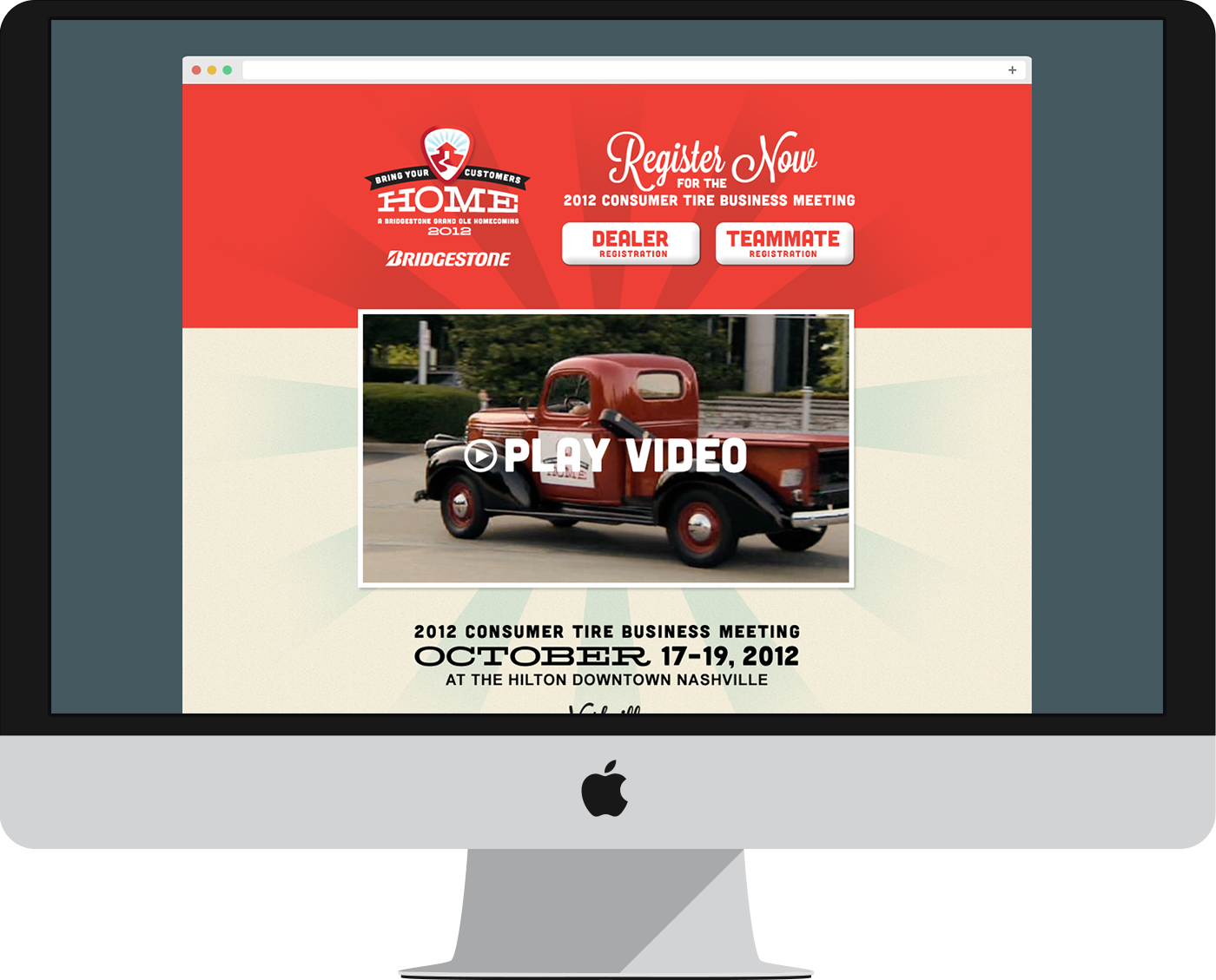 Bridgestone arranged to host their annual tire meeting in Nashville and wanted a down-home playful family feel for their big event. Everything from the branding to the website and print materials maintain the true Nashville style while still modern enough to show off their newest line of products.